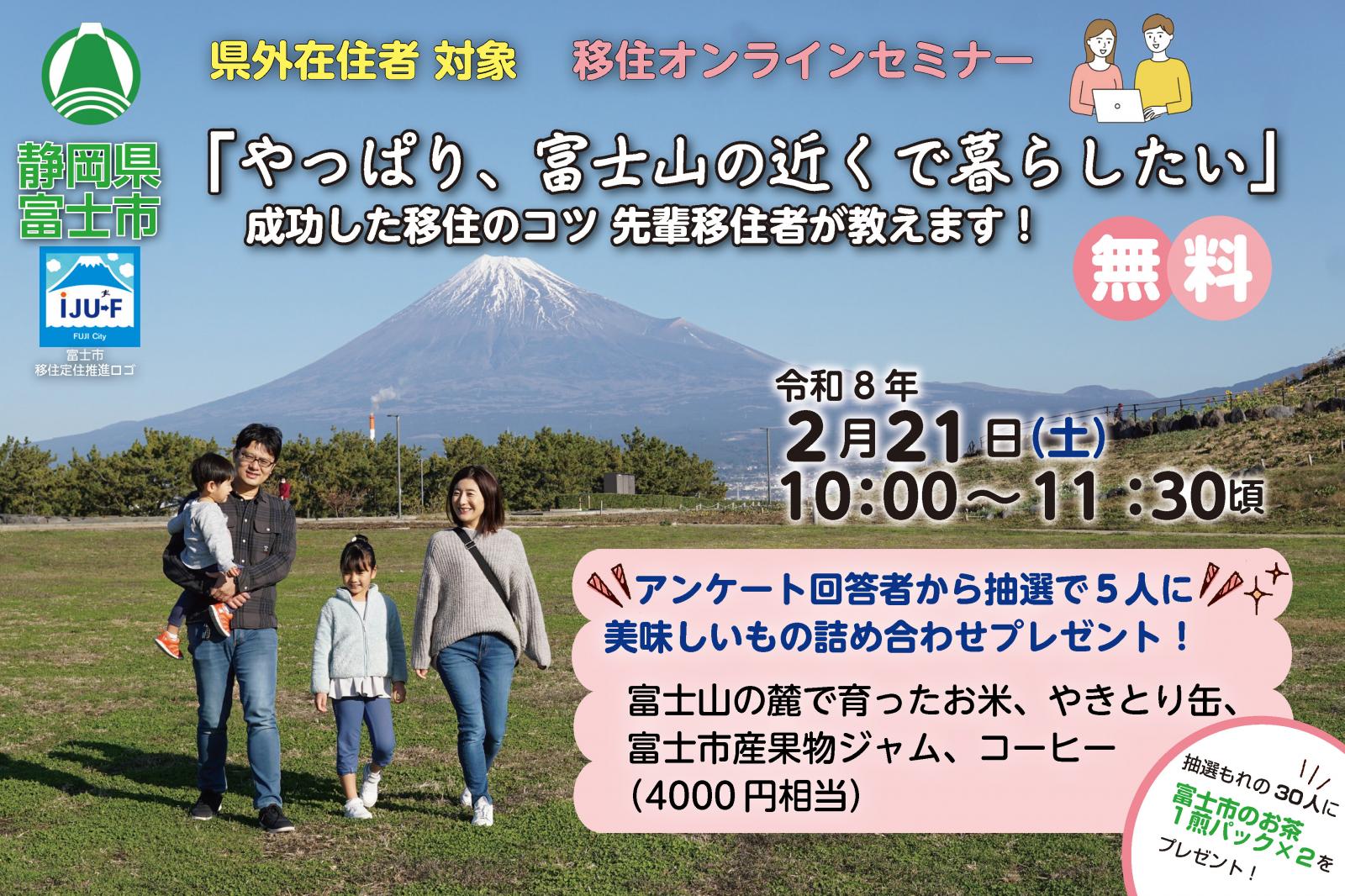 移住オンラインセミナー「やっぱり、富士山の近くで暮らしたい」 成功する移住のコツ 先輩移住者が教えます!