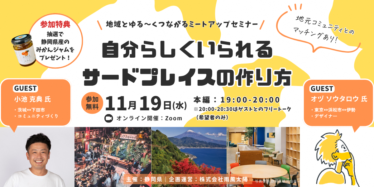 From 静岡県,浜松市,下田市,地域イベント,住まい,関西圏,首都圏,中京圏,移住セミナー,起業,オンラインセミナー,静岡,二地域居住,多拠点居住,多拠点生活,スタートアップ