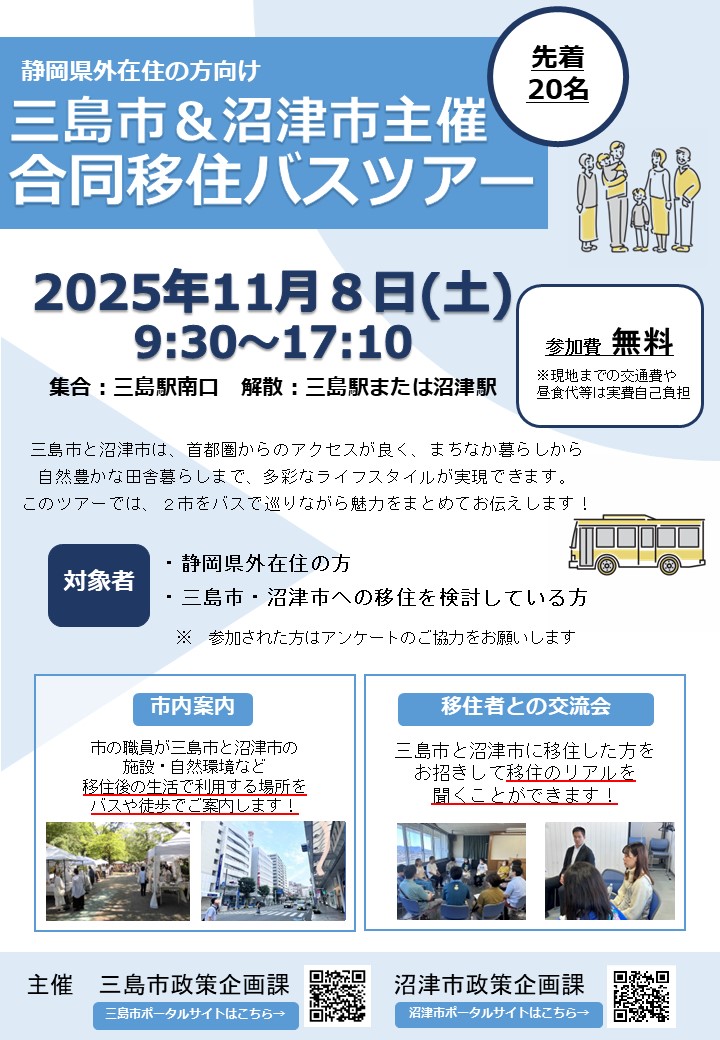 【11月8日(土)】沼津市・三島市主催合同移住バスツアーを開催します
