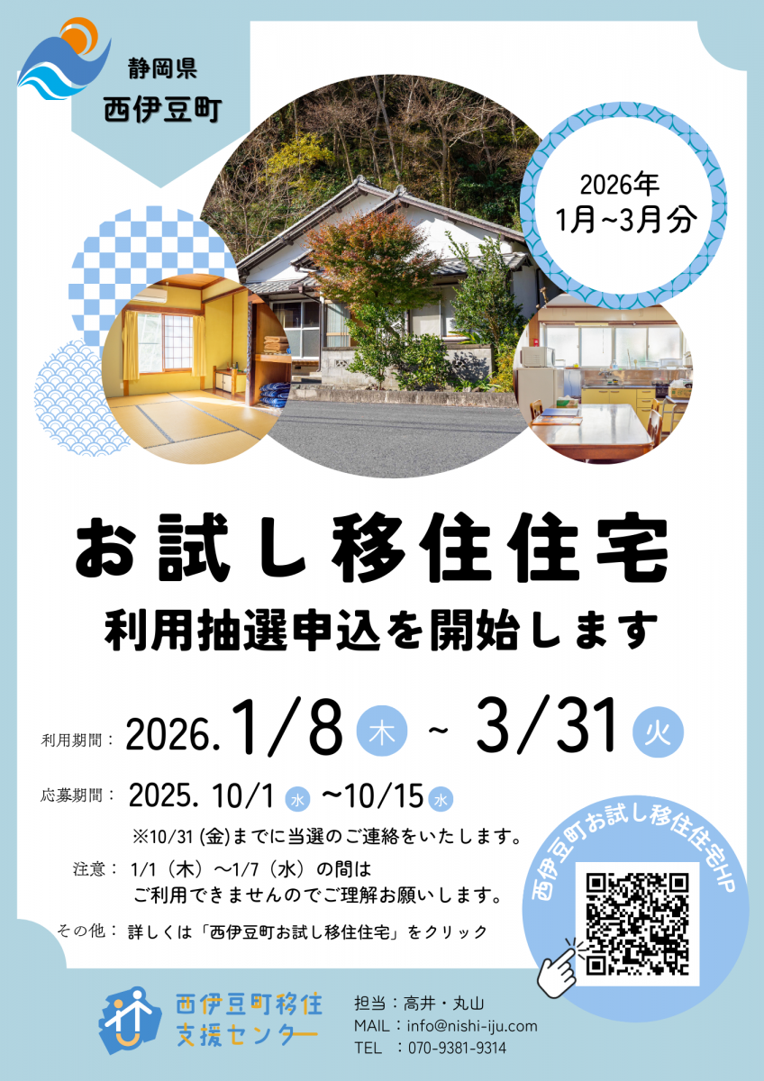HP:https://www.town.nishiizu.shizuoka.jp/kakuka/machizukuri/kikaku/otameshi_house.html